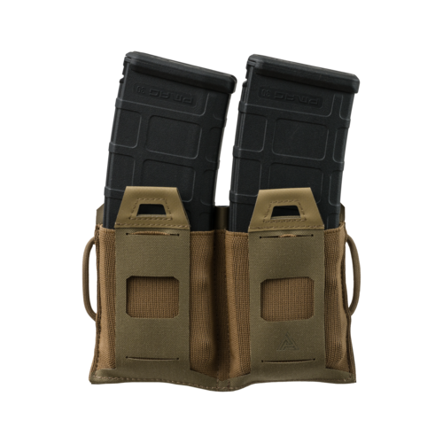 Double Flat Elastic Mag Pouch to podwójna płaska ładownica pozwalająca na dodatkowe rozszerzenie ekwipunku. Dzięki płaskiej, lekkiej konstrukcji minimalnie zwiększa ciężar oporządzenia i pozwala na zabranie ze sobą dodatkowego magazynka, granatu lub całkiem innego wyposażenia. Dzięki swojej konstrukcji i zastosowanym materiałom (połączenie laminatu i gumy) gdy jest pusta zajmuje minimalną ilość miejsca. Kieszeń jest przypinana za pomocą systemu MOLLE/PALS, a dzięki szlufkom z pracarodu można ją również przenosić na pasie o szerokości do 45 mm. Ładownica na froncie posiada wycięcia laserowe kompatybilne z system MOLLE/PALS. Od dołu jest zamknięta, co chroni przed zabrudzeniem amunicji.
