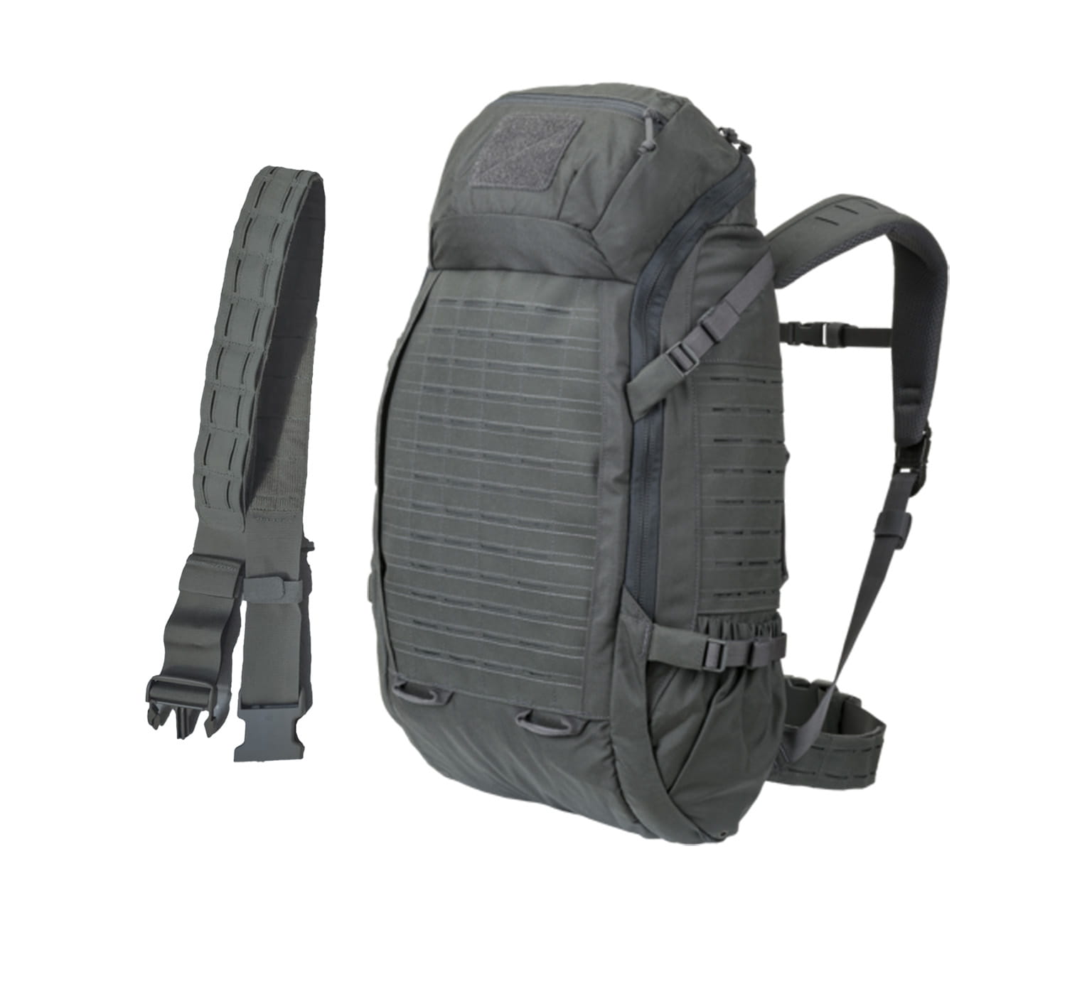 HALIFAX® medium to w pełni konfigurowalny plecak patrolowy. Ma dużą komorę główną zamykaną na zamek YKK® #10. Wnętrze plecaka pokryte zostało miękkim welurem, pozwalającym na montaż dodatkowych ładownic i kieszeni. Wewnętrzna strona pleców dodatkowo pokryta jest laserowo ciętym systemem modułowym zgodnym z MOLLE/PALS, dzięki czemu plecak może zostać zmieniony w plecak medyczny, szturmowy, breacherski, a nawet w plecak do przenoszenia radiostacji. W górnej części klapy umieszczone zostały dwie kieszenie z zamkami, w tym jednak obszyta welurem. Zewnętrzna część plecaka w całości pokryta została laserowo ciętym systemem MOLLE/PALS. Wytrzymałe szelki pozwalają równo rozłożyć masę przenoszonego sprzętu. Dodatkowe punkty montażowe na bokach i dnie plecaka, a także wzmocniona konstrukcja sprawiają, że plecak może być używany podczas skoków spadochronowych. Przednie zamki umożliwiają zamontowanie paneli plecowych systemu SPITFIRE®, co czyni ten plecak jeszcze bardziej skalowalnym.