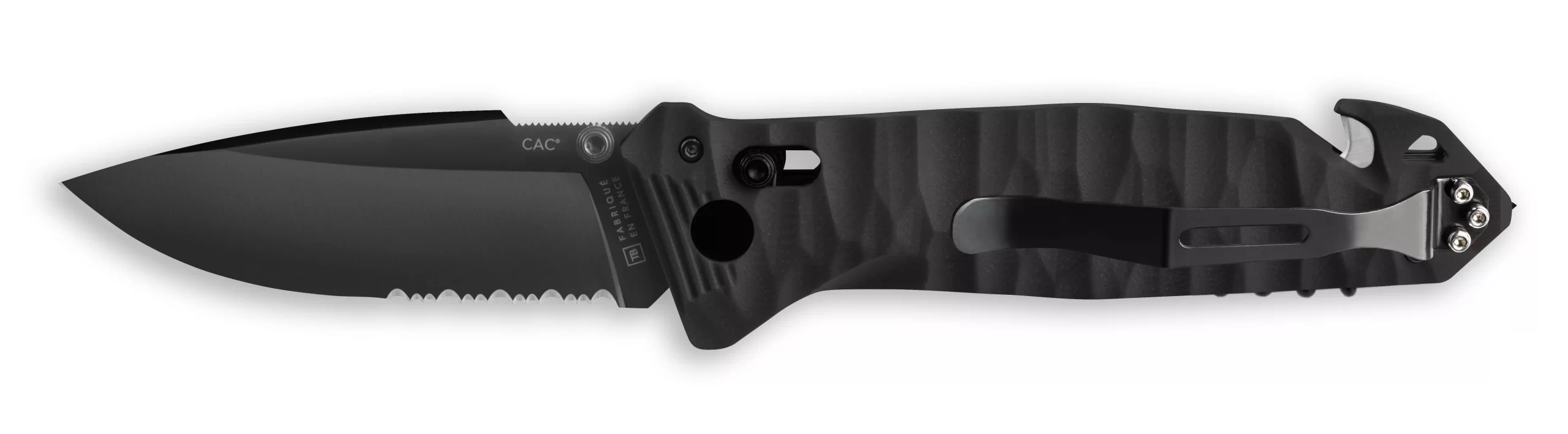 Składany nóż taktyczny z ząbkowanym ostrzem, który można obsługiwać jedną ręką. CAC to flagowy model TB Outdoor, który jest wykorzystywany przez francuską armię.