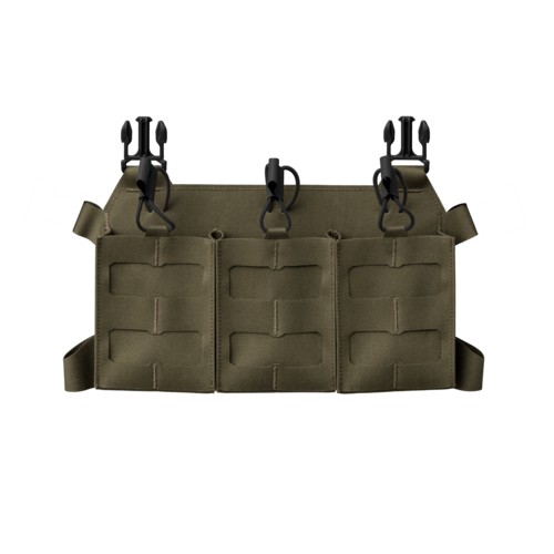 Szkieletowa klapa mieszcząca magazynki 308 systemu HK, jak również każdy inny magazynek w kalibrze 308. Od góry magazynki zabezpieczone są elastycznymi uchwytami bungie cord. Klapa dedykowana do naszych plate carrierów, w szczególności chodzi o model BEARCAT® oraz system SPITFIRE®. Dzięki szkieletowej konstrukcji klapa nie tylko ma minimalistyczną konstrukcję, ale jest również maksymalnie lekka. Jest ona mocowana do plate carrierów za pomocą górnych klamer i standardowego rzepa. Klapa może być też łatwo zmieniona w prosty, kompaktowy chest rig za pomocą Front Flap Rig Interface.