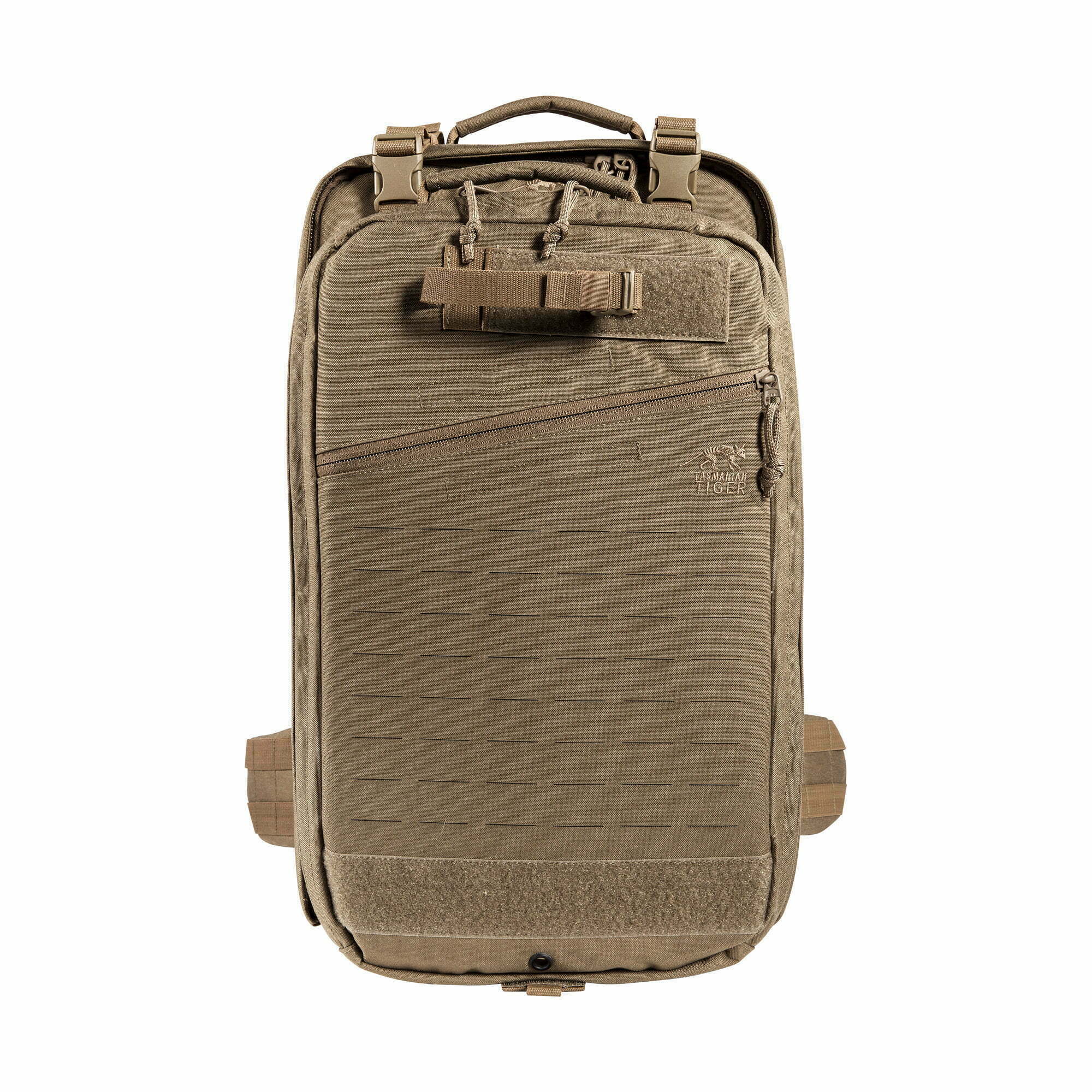- laserowo wycinane panele MOLLE na głównej komorze i przedniej kieszeni