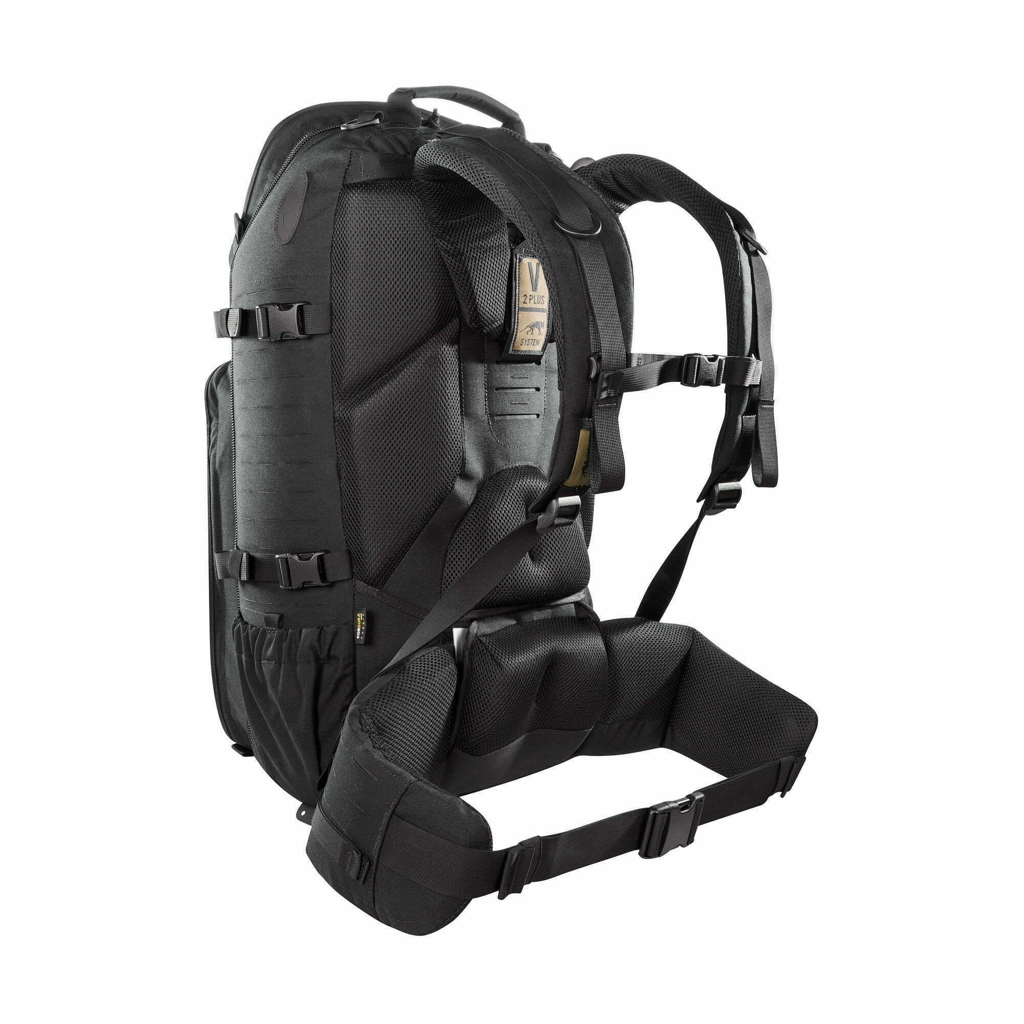 Bazą konstrukcji nowej wersji klasyka TT jest system nośny V2 Plus z regulacją wysokości i długości szelek. Regulowany pas biodrowy stabilizuje bagaż i przejmuje większą część obciążenia; w razie potrzeby możesz także go odpiąć i nosić jako pas taktyczny.