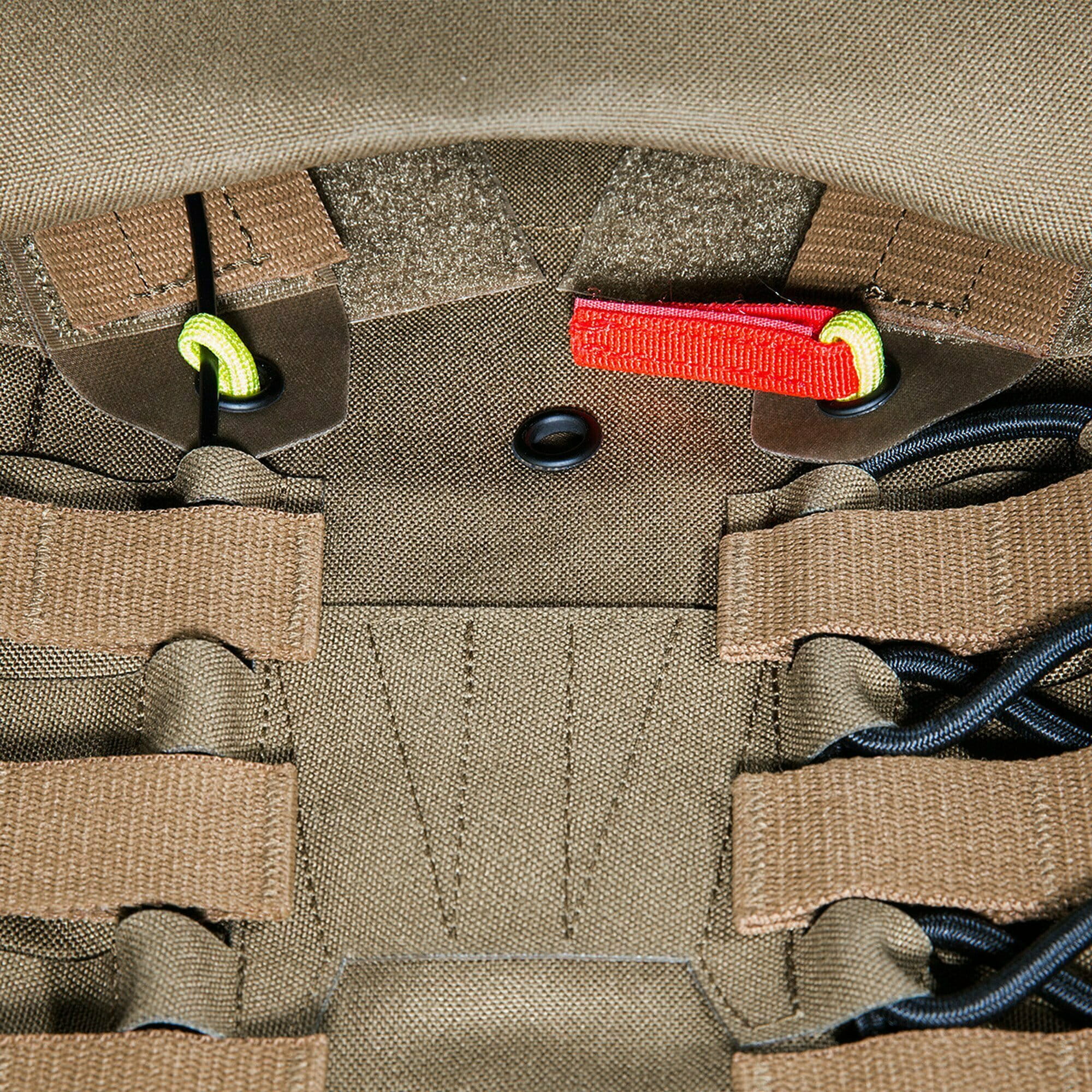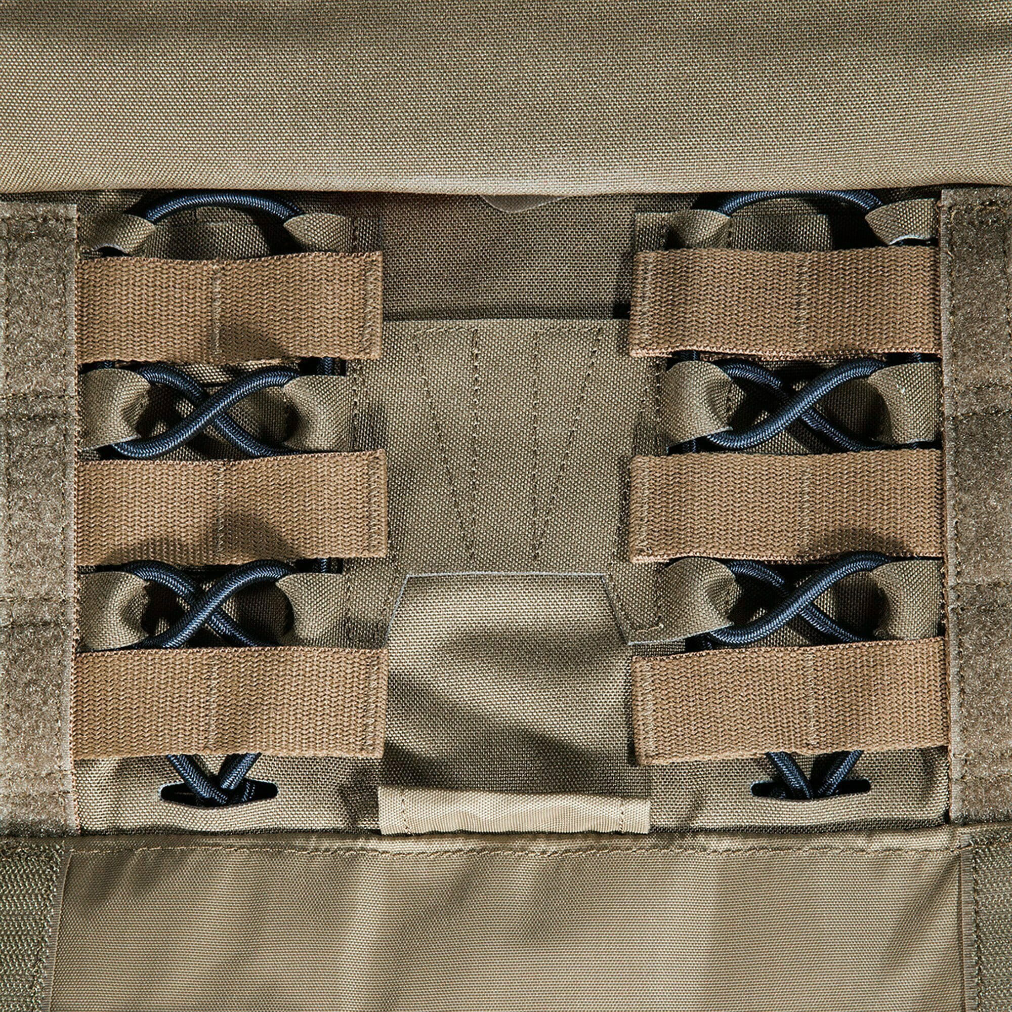 - elementy systemu MOLLE rozmieszczone z przodu i po bokach umożliwiają dalszą rozbudowę kamizelki